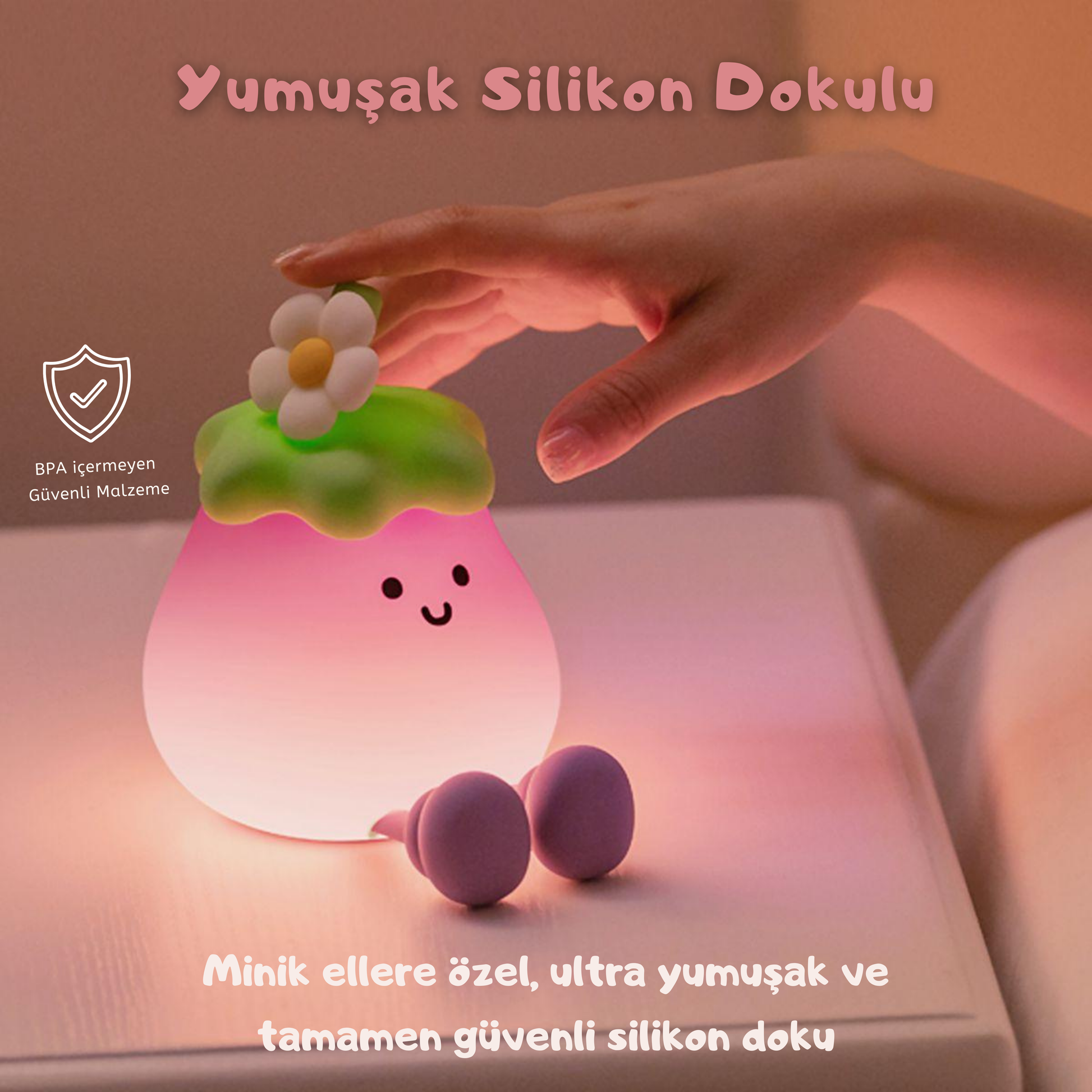Yumuşak silikon gövdesi ve sıcak tonlu LED ışığıyla çocukların rahatça uykuya dalmasına yardımcı olur.