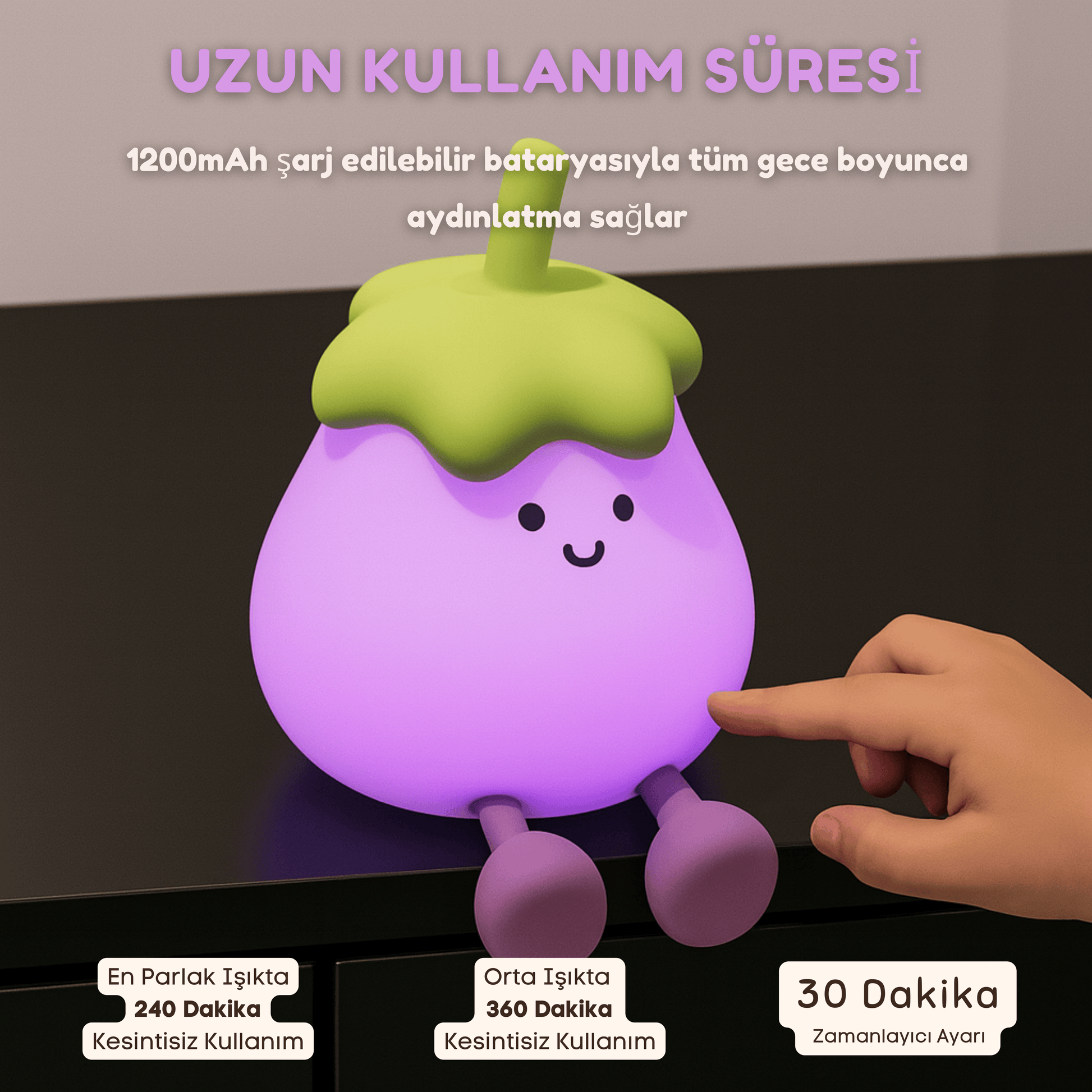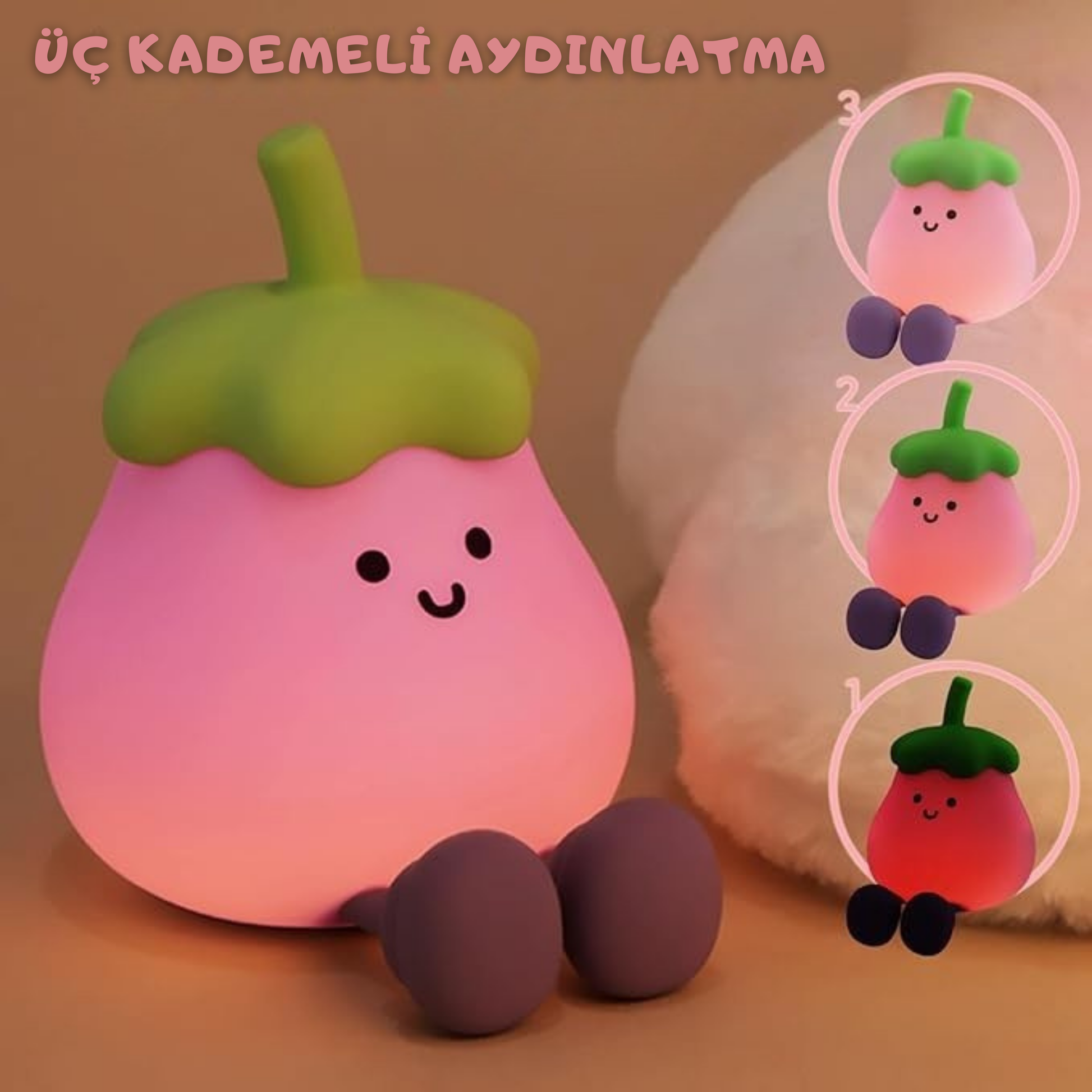 Patlıcan (Mofi), Lunova evreninin enerjik ve eğlenceli ruhunu taşıyan sevimli LED gece lambasıdır.