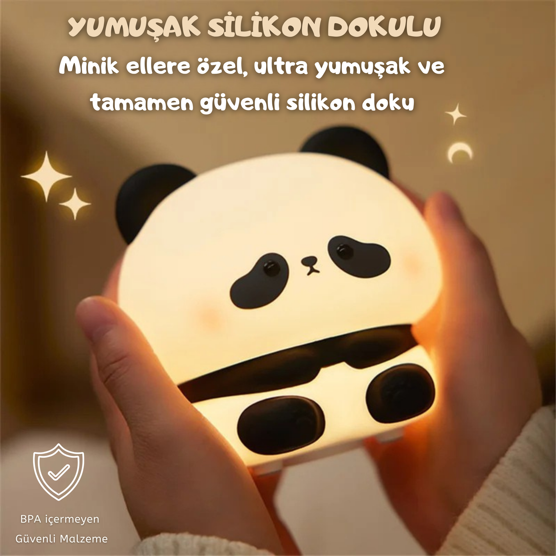 Yumuşak silikon gövdesi ve sıcak tonlu LED ışığıyla çocukların kendilerini güvende hissetmesine ve rahatça uykuya dalmasına yardımcı olur.